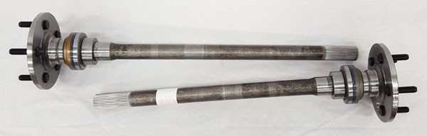To simplify your project, we build up a brand new Moser 9" thick wall round-back housing, add a drain plug, a new axle vent, a braided stainless brake hose kit with new brass Mopar-style Tee, we weld on all the correct suspension mounting brackets, and powdercoat the housing satin black to match the suspension. Then we include a matching set of heavy duty Moser 31-spline axles with 2.5” offset, big ford tapered bearings(78 ford truck), screw-in studs, and an access hole in the flange to access retainer nuts.