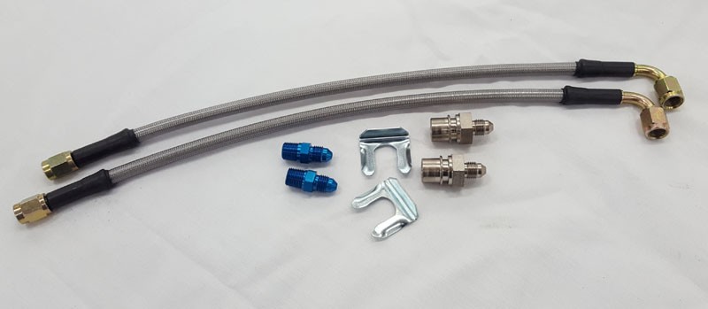 We've coupled a pair of Wilwood's premium 14" flexlines with all the fittings you need to connect front Wilwood calipers to your stock Mopar steel lines. This one kit works with all 62-76 A-body, 62-72 B-body and 70-74 E-body with any front Wilwood caliper.