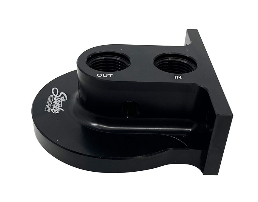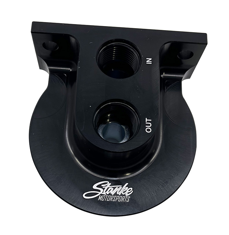Remote filter adapter features 10AN O-ring fittings (Not included)