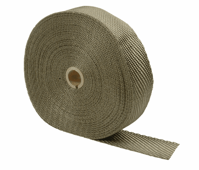 DEI titanium exhaust wrap with LR technology is constructed from pulverized lava rock, extruded into fibers, and then woven into a tight weave, giving it titanium-like strength and toughness. The improvement in thermal protection helps to reduce underhood temperatures, resulting in cooler air intake for improved performance. And less heat in the engine bay means less chance of heat soak conditions on vital underhood components. Typical glass fiber wrap is rated at handling 1,200 degrees F of maximum direct heat, while DEI's titanium wrap, using LR technology, is capable of handling direct continuous heat up to 1,800 degrees F and radiant heat up to 2,800 degrees F. And because it's pliable, there's no need to wet the wrap when wrapping headers or pipes, as many do in order to make the wrapping process easier to manage and to get a tight wrap. Titanium wrap will not shrink, and because of its material structure, it is more resistant to temperature and vibration breakdown, abrasions, chemical and hot oil spills than glass fiber wrap. Plus, DEI titanium wrap offers a very cool carbon fiber look as an added feature!