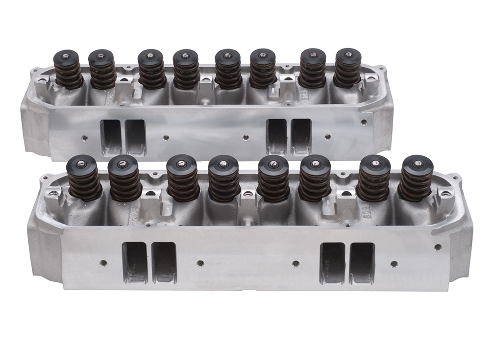 Are you looking for a set of entry-level street performance heads for your modern street rod, musclecar, or truck? These all-new Edelbrock E-Street cylinder heads are just the ticket. Manufactured in the USA by Edelbrock, these E-Street cylinder heads feature A356 aluminum castings that are heat-treated to T-6 specs for superior casting strength and quality. Their modern combustion chamber design helps to improve the combustion process and their larger-than-stock intake and exhaust ports help to move more air through your engine. These features improve an engine's efficiency, resulting in more horsepower and torque and improved mileage potential. All Edelbrock E-Street cylinder heads are assembled with manganese bronze valve guides, powder metal interlocking valve seats, and stainless steel one-piece valves with hardened valve tips. Edelbrock E-Street cylinder heads are ideal for entry level street performance engines.