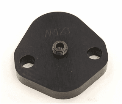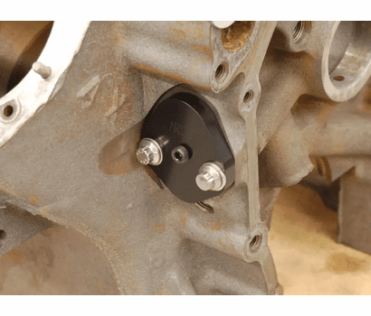 Fuel pump block off plate with 1/8 NPT port for pan vacuum fitting.