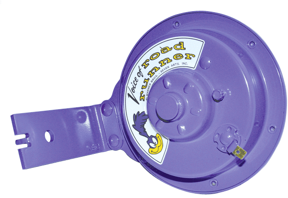 Fits: 1968-70 Plymouth Road Runner We all remember the iconic "Beep-Beep" horn sound made by the famous "Road Runner" cartoon. Now you can restore your classic Road Runner's voice with this authentic reproduction of the original horn assembly for 1968-70 Plymouth Road Runner. Each horn features the correct long arm style mounting bracket without threaded hole for proper mounting configuration. Bracket measures approximately 3-3/8" in length. Horn is painted in the correct shade of purple, as original. Replaces OE part # 2926233. Plymouth B-Body Applications: 1968-1970 Road Runner (with purple horn) Decal included.
