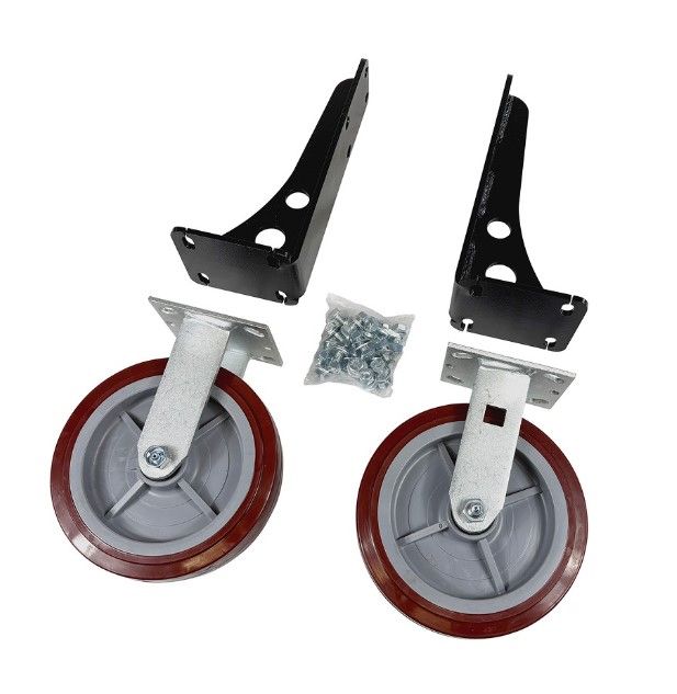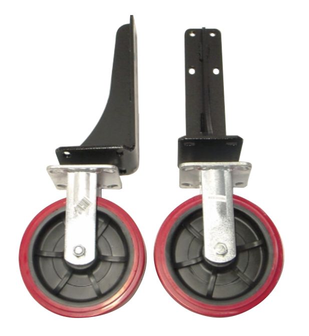 Mopar Body wheel set. This is a pair of Rear brackets and (2) body wheels that bolt onto your unibody so you can roll the empty body wheel around in your shop or take it onto your trailer to go to the paint shop etc. Each set includes two rear 8" ball bearing fixed caster body wheels. The rear brackets are specially designed to bolt to the leaf spring front hanger location. Each set fits ALL Mopar A/B/C/E body cars. REARS ONLY.
